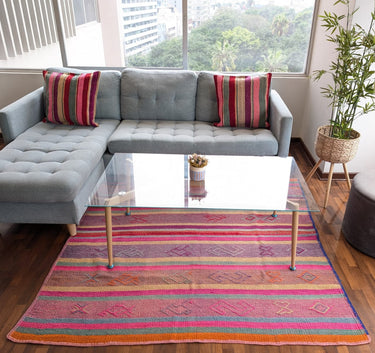 Enhance your home with our authentic Handwoven Wool Rug, skillfully crafted by artisans in the Peruvian Andes. Each rug is individually handwoven using traditional techniques passed down through generations, featuring vibrant colors and unique Andean-inspired patterns. Perfect for anyone seeking sustainable, bohemian home decor.