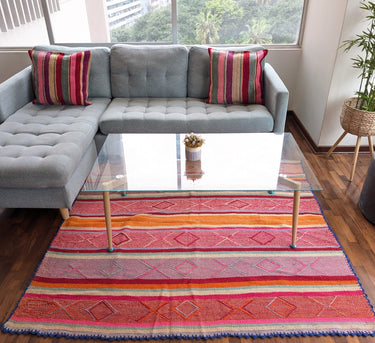 Enhance your home with our authentic Handwoven Wool Rug, skillfully crafted by artisans in the Peruvian Andes. Each rug is individually handwoven using traditional techniques passed down through generations, featuring vibrant colors and unique Andean-inspired patterns. Perfect for anyone seeking sustainable, bohemian home decor.