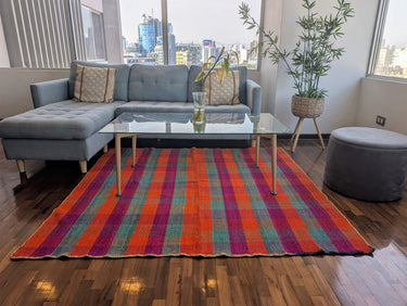 Enhance your home with our authentic Handwoven Wool Rug, skillfully crafted by artisans in the Peruvian Andes. Each rug is individually handwoven using traditional techniques passed down through generations, featuring vibrant colors and unique Andean-inspired patterns. Perfect for anyone seeking sustainable, bohemian home decor.