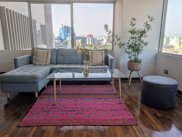 Enhance your home with our authentic Handwoven Wool Rug, skillfully crafted by artisans in the Peruvian Andes. Each rug is individually handwoven using traditional techniques passed down through generations, featuring vibrant colors and unique Andean-inspired patterns. Perfect for anyone seeking sustainable, bohemian home decor.r.
