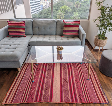 Enhance your home with our authentic Handwoven Wool Rug, skillfully crafted by artisans in the Peruvian Andes. Each rug is individually handwoven using traditional techniques passed down through generations, featuring vibrant colors and unique Andean-inspired patterns. Perfect for anyone seeking sustainable, bohemian home decor.