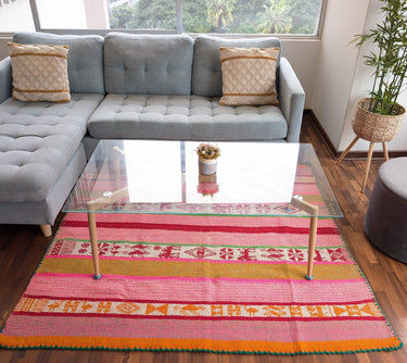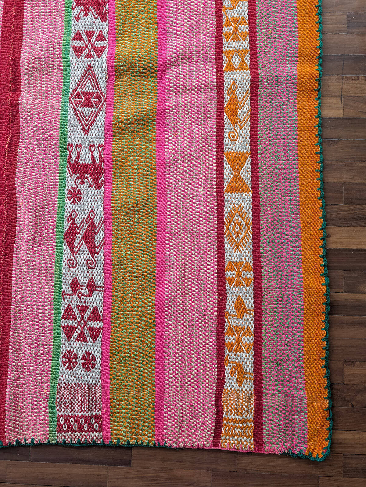 Enhance your home with our authentic Handwoven Wool Rug, skillfully crafted by artisans in the Peruvian Andes. Each rug is individually handwoven using traditional techniques passed down through generations, featuring vibrant colors and unique Andean-inspired patterns. Perfect for anyone seeking sustainable, bohemian home decor..