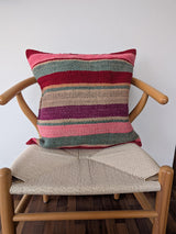 Enhance your home with our authentic Handwoven Wool Cushion Cover, skillfully crafted by artisans in the Peruvian Andes. Each cushion is uniquely created from traditional 'frazadas' —handwoven Peruvian blankets—using techniques passed down through generations. These cushions feature vibrant colors and unique Andean-inspired patterns, perfect for anyone seeking sustainable, bohemian home decor.
